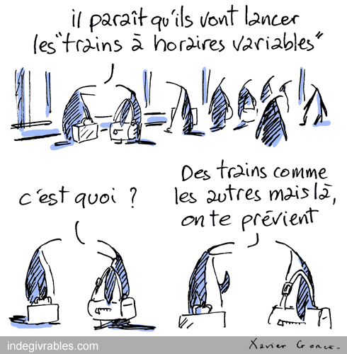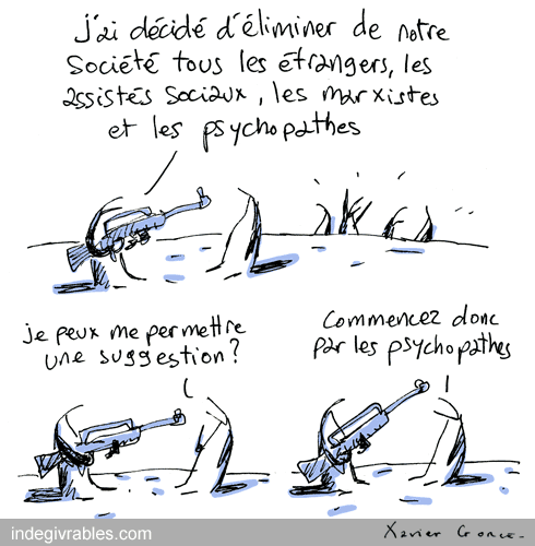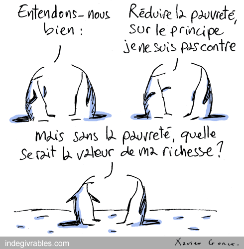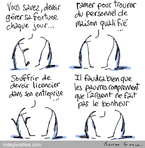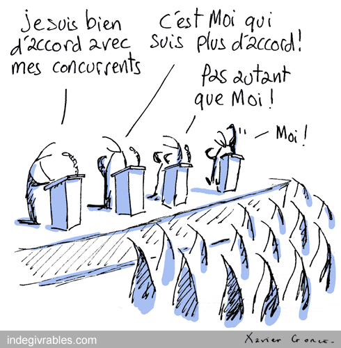 Les indégivrables Publié le 25 octobre 201121 octobre 2011 par tuxicoman Dessinés par Xavier Gorce A lire aussi : Quelques définitions de Mediapart Luc Chatel recalé sur un problème de math de CM2