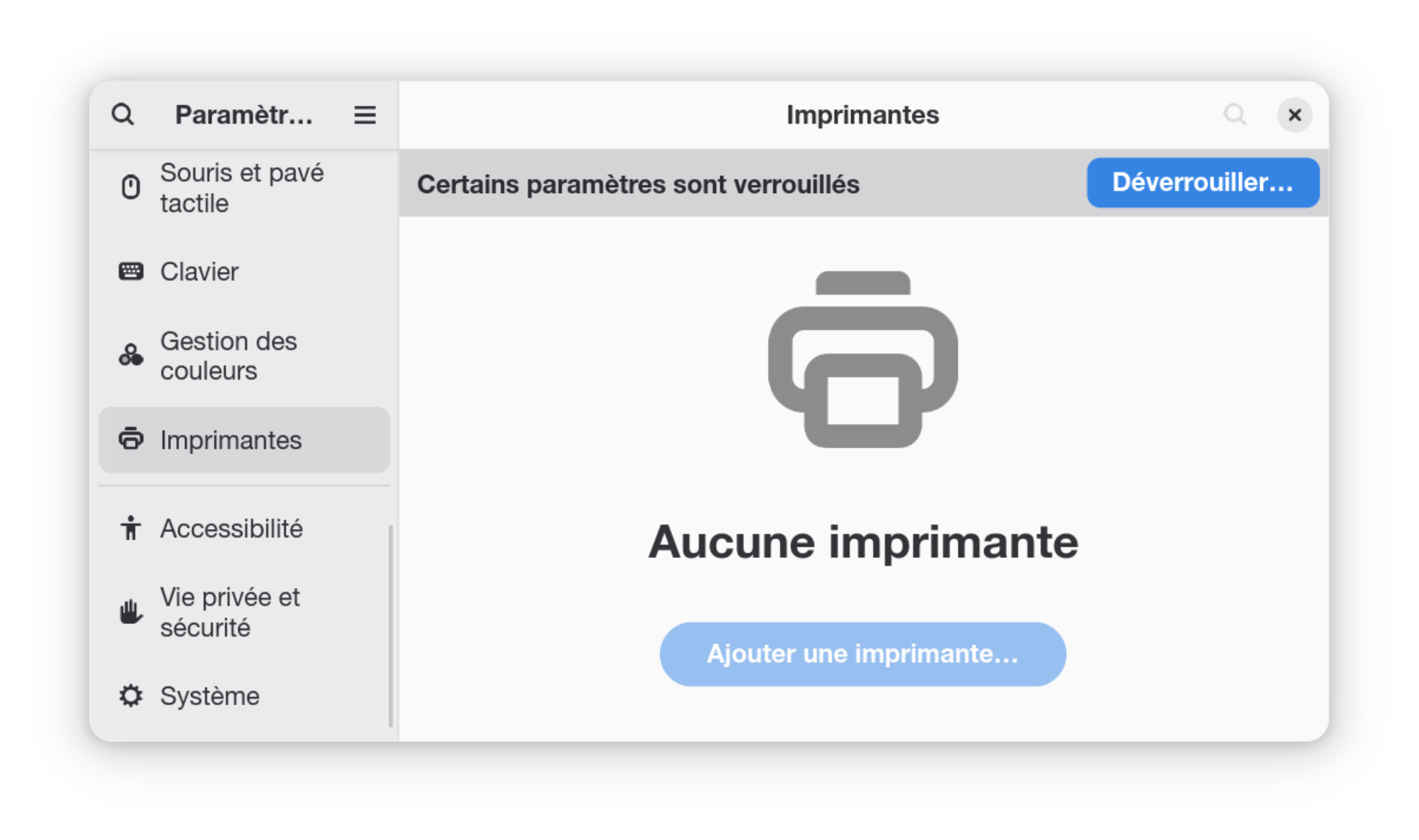 Bon, j’ai trouvé comment déverrouiller cela, il ne suffit pas d’ajouter l’utilisateur au groupe « lpadmin », ce qu’il faut c’est changer les permissions dans Polkit. Voici le donc comment permettre à tous les utilisateur de gérer les imprimantes à travers le panneau de configuration de Gnome:
